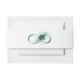 The symbol of infinity with a bright, green, artistic peacock feather on a white background. Tattoo style.
