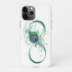 The symbol of infinity with a bright, green, artistic peacock feather on a white background. Tattoo style.