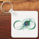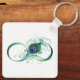 The symbol of infinity with a bright, green, artistic peacock feather on a white background. Tattoo style.