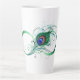 The symbol of infinity with a bright, green, artistic peacock feather on a white background. Tattoo style.