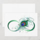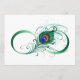 The symbol of infinity with a bright, green, artistic peacock feather on a white background. Tattoo style.