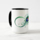 The symbol of infinity with a bright, green, artistic peacock feather on a white background. Tattoo style.