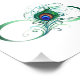 The symbol of infinity with a bright, green, artistic peacock feather on a white background. Tattoo style.