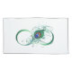 The symbol of infinity with a bright, green, artistic peacock feather on a white background. Tattoo style.