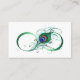 The symbol of infinity with a bright, green, artistic peacock feather on a white background. Tattoo style.
