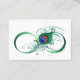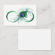 The symbol of infinity with a bright, green, artistic peacock feather on a white background. Tattoo style.