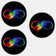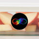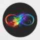 Artistically drawn infinity symbol with beautiful rainbow feather on white background. Tattoo style.