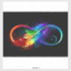 Artistically drawn infinity symbol with beautiful rainbow feather on white background. Tattoo style.