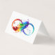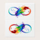 Artistically drawn infinity symbol with beautiful rainbow feather on white background. Tattoo style.