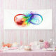 Artistically drawn infinity symbol with beautiful rainbow feather on white background. Tattoo style.