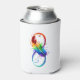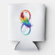 Artistically drawn infinity symbol with beautiful rainbow feather on white background. Tattoo style.