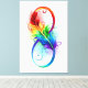 Artistically drawn infinity symbol with beautiful rainbow feather on white background. Tattoo style.