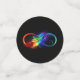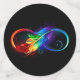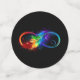 Artistically drawn infinity symbol with beautiful rainbow feather on white background. Tattoo style.