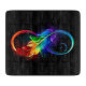Artistically drawn infinity symbol with beautiful rainbow feather on white background. Tattoo style.