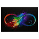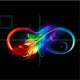 Artistically drawn infinity symbol with beautiful rainbow feather on white background. Tattoo style.