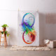 Artistically drawn infinity symbol with beautiful rainbow feather on white background. Tattoo style.