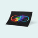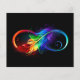 Artistically drawn infinity symbol with beautiful rainbow feather on white background. Tattoo style.