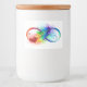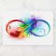 Artistically drawn infinity symbol with beautiful rainbow feather on white background. Tattoo style.