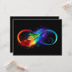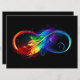 Artistically drawn infinity symbol with beautiful rainbow feather on white background. Tattoo style.