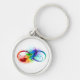 Artistically drawn infinity symbol with beautiful rainbow feather on white background. Tattoo style.