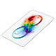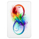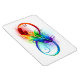 Artistically drawn infinity symbol with beautiful rainbow feather on white background. Tattoo style.