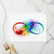 Artistically drawn infinity symbol with beautiful rainbow feather on white background. Tattoo style.