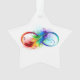 Artistically drawn infinity symbol with beautiful rainbow feather on white background. Tattoo style.