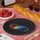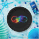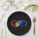 Artistically drawn infinity symbol with beautiful rainbow feather on white background. Tattoo style.
