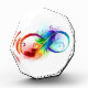 Artistically drawn infinity symbol with beautiful rainbow feather on white background. Tattoo style.
