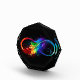 Artistically drawn infinity symbol with beautiful rainbow feather on white background. Tattoo style.