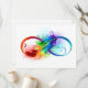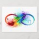 Artistically drawn infinity symbol with beautiful rainbow feather on white background. Tattoo style.