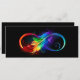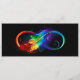 Artistically drawn infinity symbol with beautiful rainbow feather on white background. Tattoo style.
