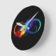 Artistically drawn infinity symbol with beautiful rainbow feather on white background. Tattoo style.
