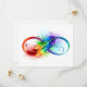 Artistically drawn infinity symbol with beautiful rainbow feather on white background. Tattoo style.