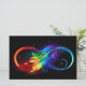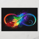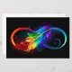Artistically drawn infinity symbol with beautiful rainbow feather on white background. Tattoo style.