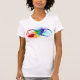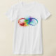 Artistically drawn infinity symbol with beautiful rainbow feather on white background. Tattoo style.