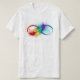 Artistically drawn infinity symbol with beautiful rainbow feather on white background. Tattoo style.