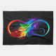 Artistically drawn infinity symbol with beautiful rainbow feather on white background. Tattoo style.