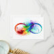 Artistically drawn infinity symbol with beautiful rainbow feather on white background. Tattoo style.