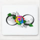 infinity symbol with rainbow rose on a white background.