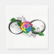 infinity symbol with rainbow rose on a white background.