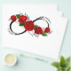 infinity symbol with red roses and black stalks on a white background. Design with roses. Tattoo style. Gothic style. Tribal graphics. Style sketch.
