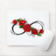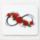infinity symbol with red roses and black stalks on a white background. Design with roses. Tattoo style. Gothic style. Tribal graphics. Style sketch.