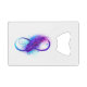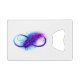 Infinity symbol with a beautiful feather painted in purple and blue bright colours on white background.