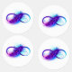 Infinity symbol with a beautiful feather painted in purple and blue bright colors on white background.