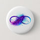 Infinity symbol with a beautiful feather painted in purple and blue bright colours on white background.
