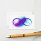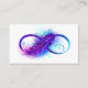 Infinity symbol with a beautiful feather painted in purple and blue bright colours on white background.