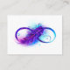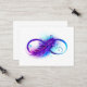 Infinity symbol with a beautiful feather painted in purple and blue bright colours on white background.
