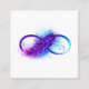 Infinity symbol with a beautiful feather painted in purple and blue bright colours on white background.