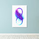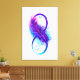 Infinity symbol with a beautiful feather painted in purple and blue bright colours on white background.